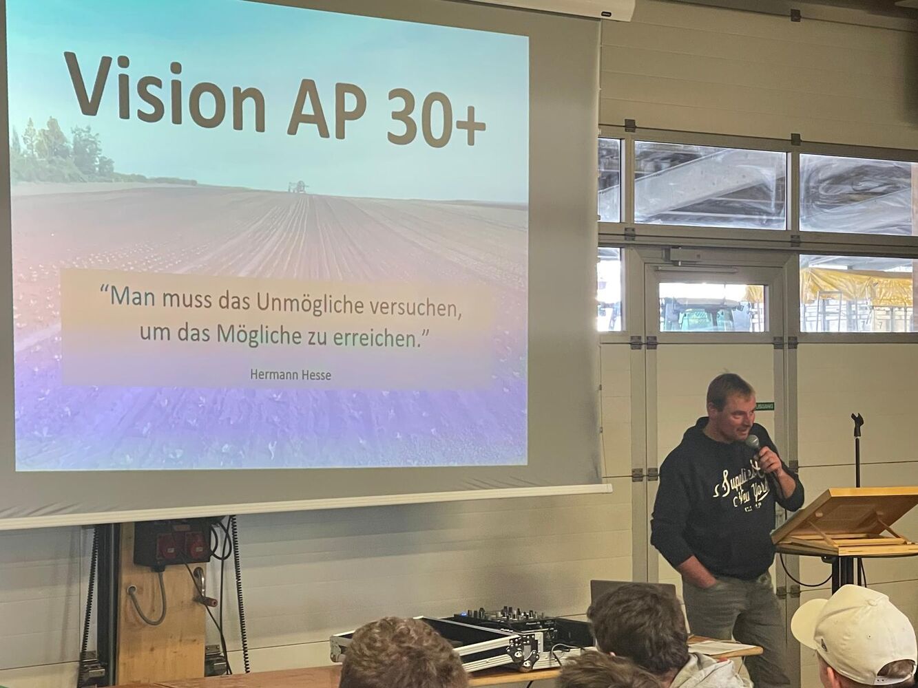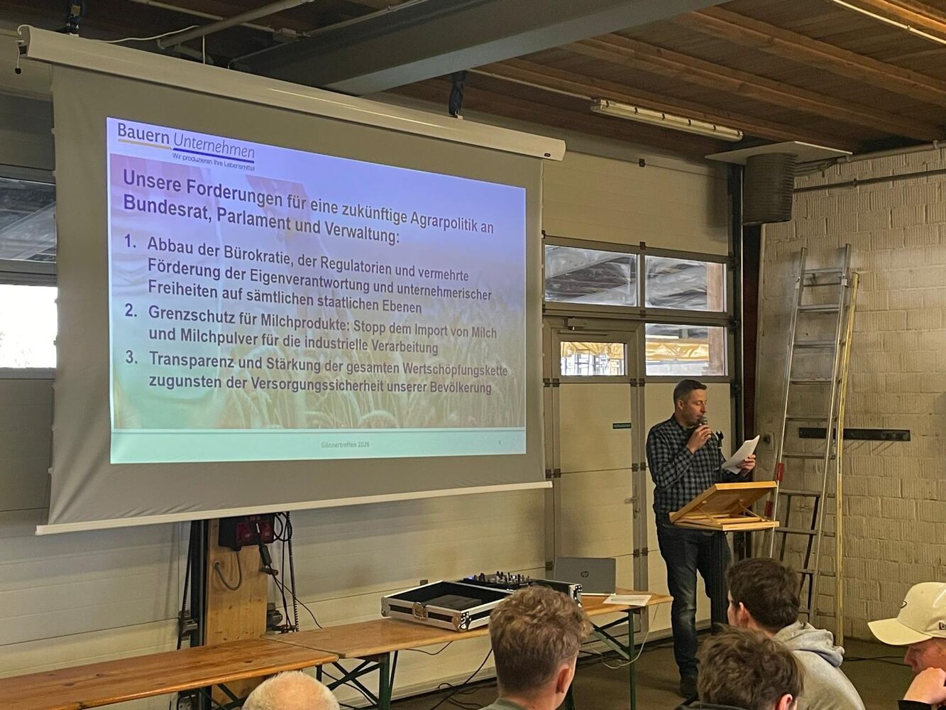 Landwirt Jürg Haas aus dem Messen SO erläuterte die AP 30+ aus Sicht der produzierenden Landwirtschaft. Statt in die Zukunft zu blicken, will die Verwaltung noch mehr widersinnige Vorgaben und Regulierungen einführen. Dem ist konsequent entgegenzuhalten: Wir Landwirte und Landwirtinnen übernehmen unsere Verantwortung. Hier benötigen wir einen konsequenten Systemwechsel. Nach jahrelanger Ökologisierung unserer Landwirtschaft brauchen wir mit der neuen AP 30+ marktgerechte und produzentenbezogene Instrumente, die in Zukunft unsere Versorgungssicherheit als den Produktionsauftrag garantieren. Für einen modernen Ackerbau ist es zwingend, dass diverse unnötige Programme gestrichen werden und diese zugunsten von Effizienzbeiträgen – nämlich in Franken pro Tonne verwertbarem Erntegut – umgelagert werden. Unsere Bauernfamilien wollen sich auch in Zukunft für eine nachhaltige und sichere Ernährung der Bevölkerung einsetzen. Denn kaum ein anderer Beruf besitzt eine so verantwortungsvolle Natur- und Tierverbundenheit. Wir alle wollen uns als selbständige Unternehmen einsetzen und unsere unternehmerische Selbstständigkeit bewahren.