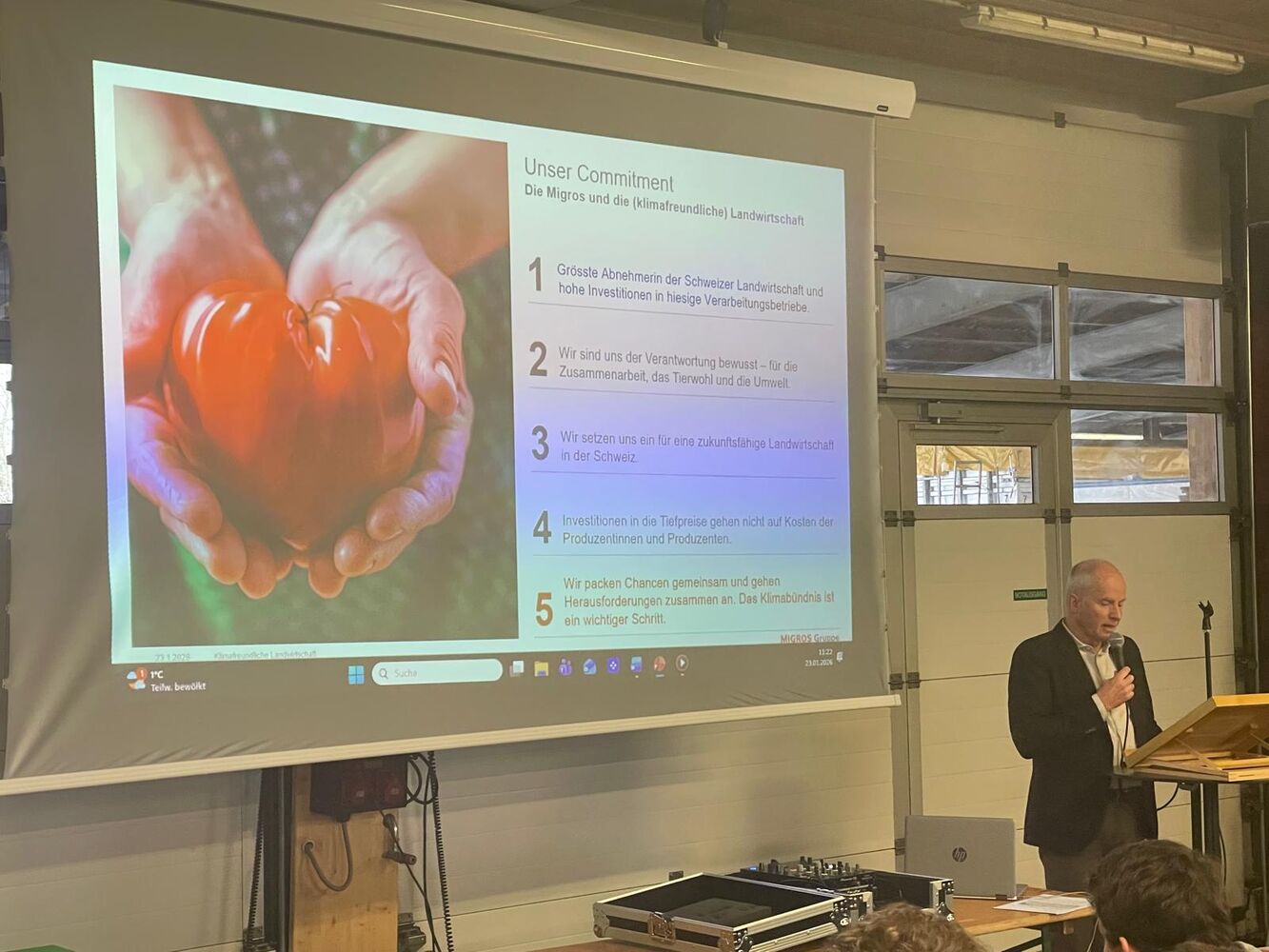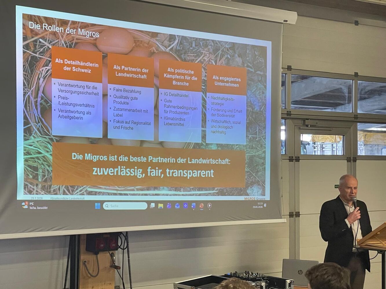 Auf dem Maschinenbetrieb der Firma Daniel Haffa im Mattwil TG konnte Präsident Samuel Guggisberg vor über 100 Interessierten die aktuellen Herausforderungen der Landwirtschaft erläutern. Jürg Maurer, Leiter Wirtschaftspolitik des Migros-Genossenschafts-Bundes erläuterte die Ziele des Klimabündnisses Landwirtschaft, welches 2025 zusammen mit den grössten Einzelhändlern gegründet wurde. Sie bestehen in der Reduktion der Treibhausgasemissionen auf Netto-Null durch die Umsetzung wirksamer Massnahmen, die ganzheitliche, nachhaltige Anbaumethoden fördern, ohne die heimische Produktion zu verringern. Die Einführung eines standardisierten Datenaustauschs entlang der Wertschöpfungskette sowie die Entwicklung eines Finanzierungsmodells, das die Herkunft und Verwendung der Mittel sicherstellt und Marktverzerrungen verhindern soll. Sicherstellen, dass die von den Erzeugern erbrachten Leistungen von Abnehmern wie Verarbeitern, Handel und Industrie vergütet werden.
